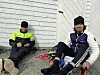 Thomas Halleland og turkamerat Sigbjørn Tjelle tar seg en velfortjent pust i bakken på veien mot 100 000 skritt.