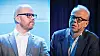 Sjefredaktør Gard Steiro i VG (t.v.) og Google Norge-sjef Jan Grønbech. Bildene er fra TV-toppmøtet under Nordiske Mediedager i Bergen mai 2018.