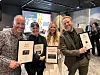 Prisvinnerne i NJ Vestfold: Siw Nakken og Eirik Haugen (Østlands-Posten, vinner av Åpen klasse), Veslemøy Prøis (NRK Vestfold, årets journalistpris) og Torgeir Lorentzen (Gjengangeren, beste nyhetssak).