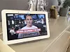 Google Nest Hub, lansert internasjonalt 9. oktober i fjor. Produktet vert tilgjengeleg i Norge i slutten av mai. På skjermen ser me døme på VG sine «lyd/skjerm»-videoar.Ola Stenberg/Privat