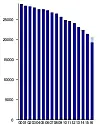 Utviklingen i nettoopplag fra år 2000 (Mørk blå for papirandel, lys for digital andel), GD.Wiki