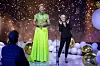 Programleder Morten Hegseth dukket opp på scenen i kjole, mens veteranen Sigrid Bonde Tusvik gikk i dress. Duoen jublet over de høye seertallene på norsk TV under koronanedstengingen.