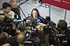 Camilla Herrem snakker med pressen før kampen mot Tsjekkia.Foto: Vidar Ruud / NTB scanpix