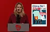 Skien-ordfører Hedda Foss Five (Ap) reagerer på forsiden av Tønsbergs Blads papirutgave tirsdag denne uken. På forsiden sto det «Fri!» som en henvisning til fylkesoppløsningen mellom Vestfold og Telemark.