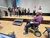 Men komitemedlem Tron Soot-Ryen, som sitter i rullestol, fikk ikke mulighet til å bli med opp på scenen.