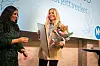 Ingrid Marie Zeiner (til høyre) fikk prisen som årets talent av Medienettverket onsdag. Idrettspresident Zaineb Al-Samarai delte ut prisen,
