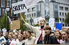 Antall medieoppslag om klimamål og CO2-utslipp økte med over 100 prosent i fjor. På bildet har skoleelever klimastreik foran Stortinget i Oslo.
