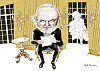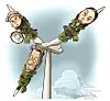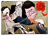 Disse ti karikatur­tegningene står utstilt på Stortinget