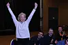 Berit Kjøll jublet vilt etter at hun med knapp margin til Sven Mollekleiv ble valgt til ny idrettspresident under Idrettstinget på Lillehammer.Olsen, Geir / NTB Scanpix