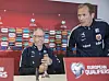 Landslagssjef Lars Lagerbäck og Svein Graff på pressekonferanse i San Marino i fjor. Foto: Vidar Ruud / NTB scanpix