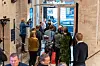 Mange nysgjerrige ansatte fulgte med på besøket på Pressens hus.Foto: Kent Olsen
