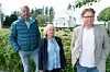 Journalist Hans Petter Aass (f.v.), Tina Jørgensens mor, Torunn Austdal Rasmussen, og forfatter og tidligere politietterforsker Jørn Lier Horst fotografert ved Bore kirke.