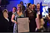 Redaktør i Svalbardposten tar imot journalistprisen på vegne av sin journalist.Eira Lie Jor / Medier24
