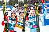Therese Johaug (i midten), Heidi Weng (t.v.) og Ingvild Flugstad Østberg blir å se på på NRK og TV 2 fremover. Her er trioen avbilder under verdenscuprennet i Granåsen i Trondheim tidligere i vinter.