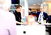 Vel halve redaksjonen har samlet seg rundt «nyhetshjulet», desken i mediehuset.