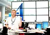 Det er fredag morgen og avisa gjennomgås. Men det er ingen som blar i papir. Bak hjulet står en masse storskjermer koblet sammen til en svær tavle.