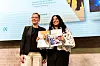 Mari Velsand fra Medietilsynet overrakte rapporten til kulturminister Lubna Jaffery.Foto: Kent Olsen