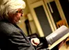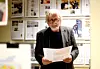Odd Birger leser en kort tekst fra en av bøkene om Steinkjer: