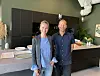 Cecilie Eriksrud fra Schibsted og daglig leder av Matkanalen, Øivind Lindøe, fra åpningen av nytt studio i Haugesund.