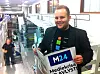 Redaktør Gard Michalsen viser fram en prøvetrykk av den nye papiravisa.