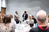 Per Christian Selmer-Anderssen blir intervjuet etter å ha mottatt prisen som Årets frilanser.