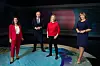 NRK sine programlederne under valgnatt-sendingen: Rima Iraki, Petter Oulie Hauge, Annette Groth og Ingvild Bryn.Julia Marie Naglestad / NRK