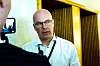 Thor Gjermund Eriksen kommenterer streik i NRK i radioresepsjonen på Marienlyst.Eira Lie Jor