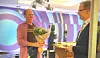 Stein Nybakk (til venstre) fikk både blomster og hyllest av Espen Aas.Anna Sofie Tønder Tørmoen
