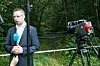 NRK-journalist Olav Rønneberg på jobb i felt - her i forbindelse med et drap i 2012.Audun Braastad / NTB scanpix