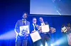 Juryen gratulerer Kjetil Sæter, Knut Gjernes, Lars Kristian Solem og Fredrik Solstad i Dagens Næringsliv med SKUP-prisen for 2017