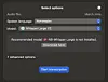3. Når du nå har funnet lydfilen du skal laste opp, så kommer du til en skjerm som spør deg om språket du vil bruket, hvilken språkmodell du ønsker å benytte og du får muligheten til å starte transkriberingen. NB! Hvis du ikke har lastet ned Whisper Large V2-modellen, så gjør det.